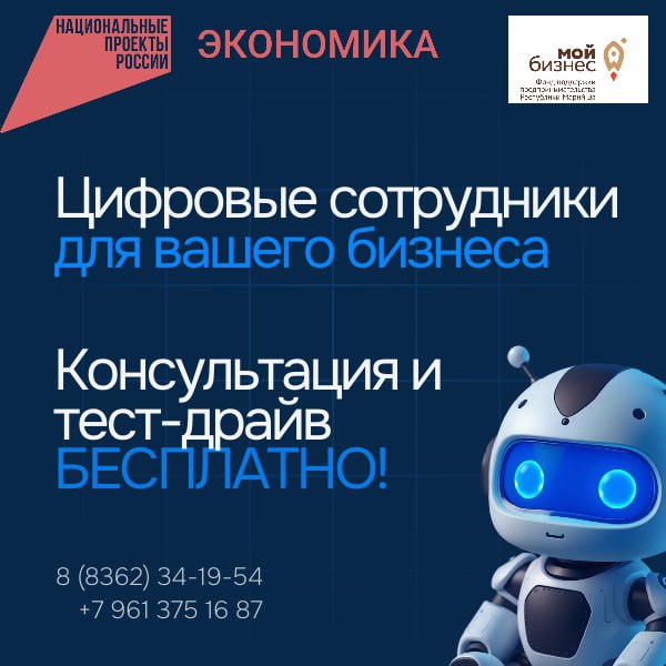 Центр "Мой бизнес" предлагает бесплатные консультации по внедрению ЦИФРОВЫХ СОТРУДНИКОВ в ваш бизнес.